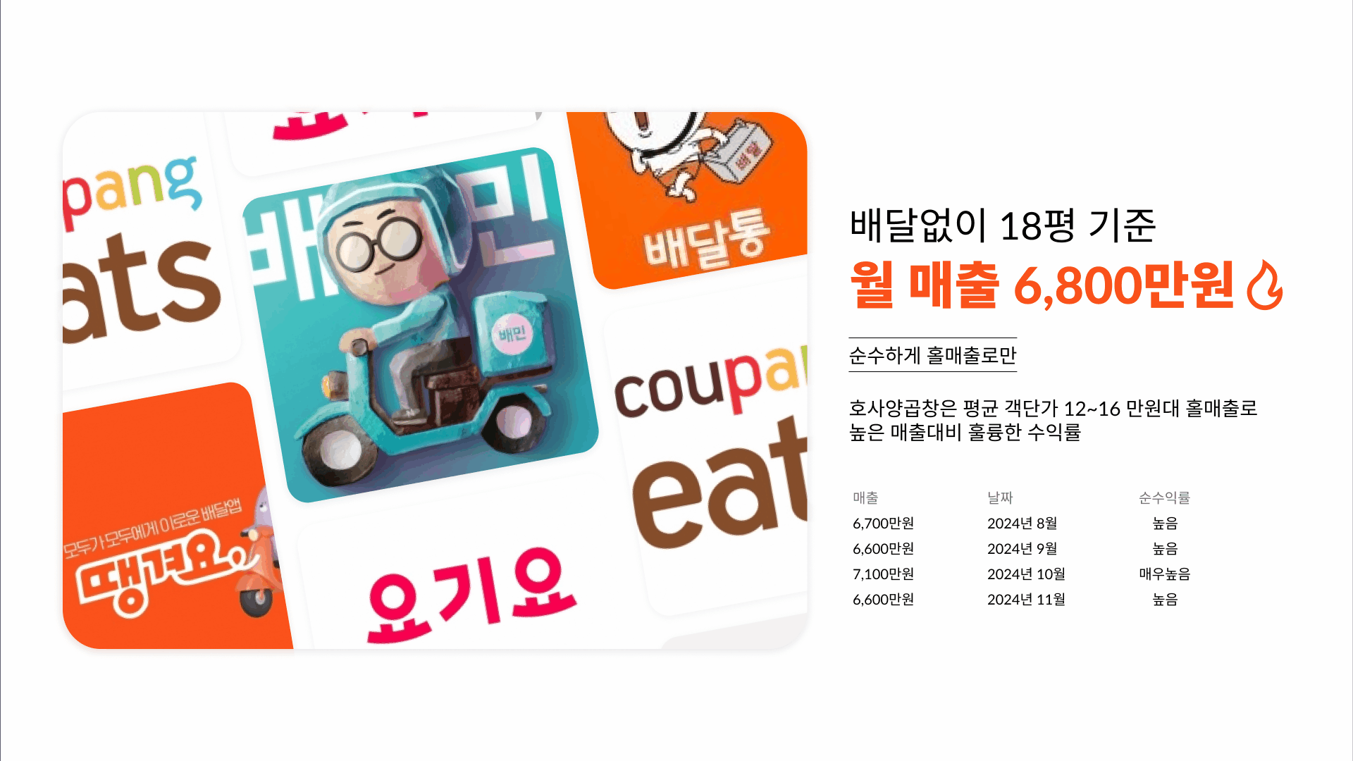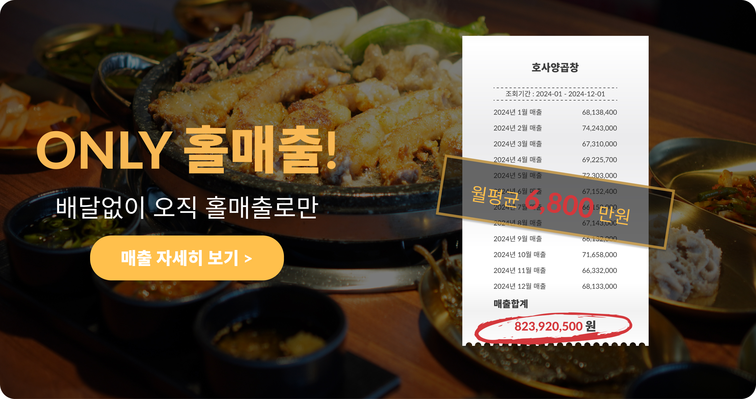 배달 없이 100% 홀매출 만으로 월 평균 매출 6,800만원